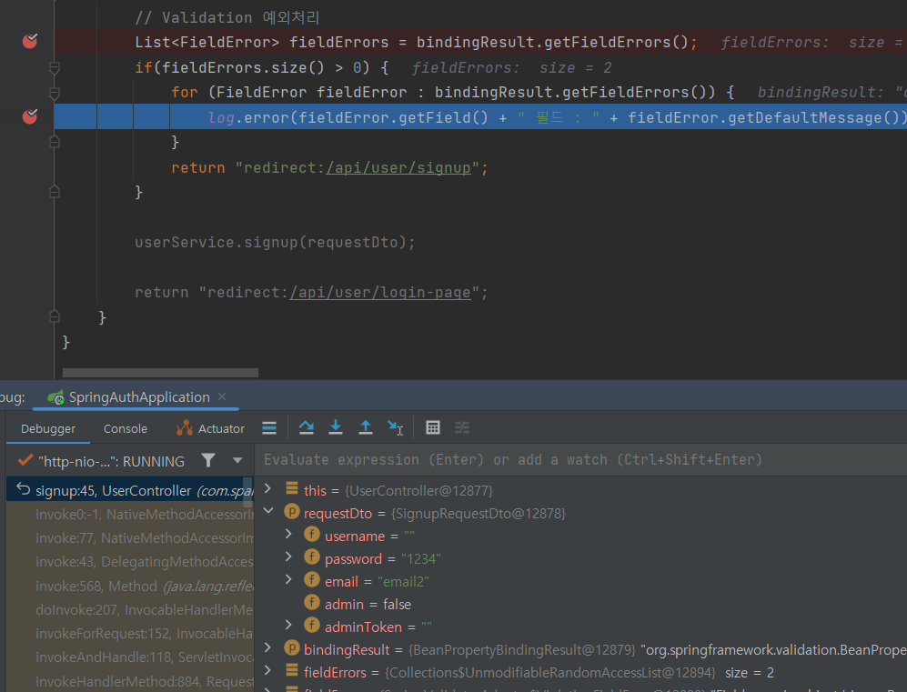 다시 Debug해주면 아래와 같이 다시 정상적으로 작동한 것을 확인 할수 있습니다.